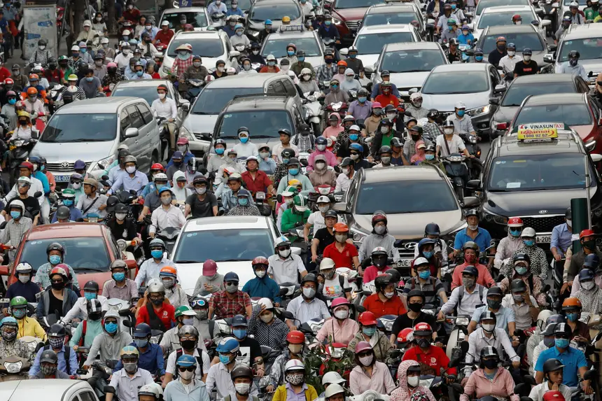 Hora de ponta em Hanói, no Vietname, após o Governo decretar medidas de desconfinamento