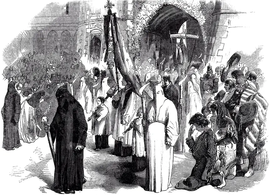 Castigo Pintura de uma procissão nas ruas de Lisboa para redenção dos pecados que trouxeram à cidade a epidemia de febre amarela no século XIX