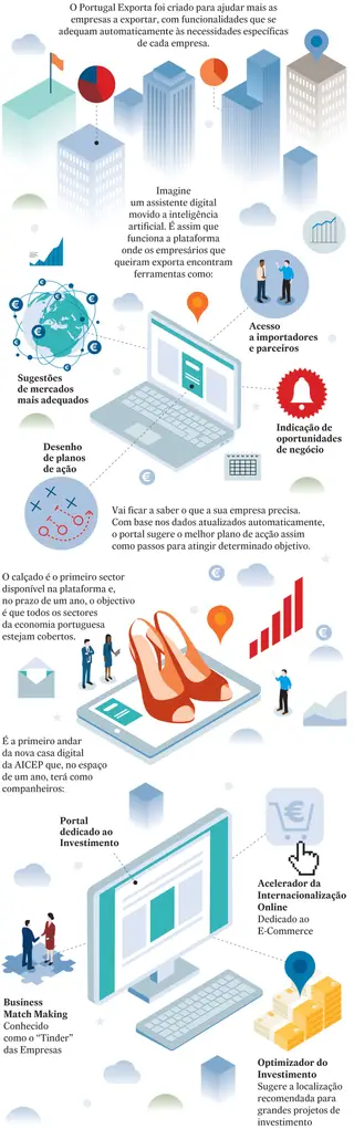 “Portugal Exporta” é a nova plataforma digital da AICEP a que as empresas podem recorrer para facilitar o seu acesso aos mercados estrangeiros. É o primeiro andar de uma casa digital que a Agência para o Investimento e Comércio Externo de Portugal planeia construir para antecipar o objetivo de 50% de exportações no PIB