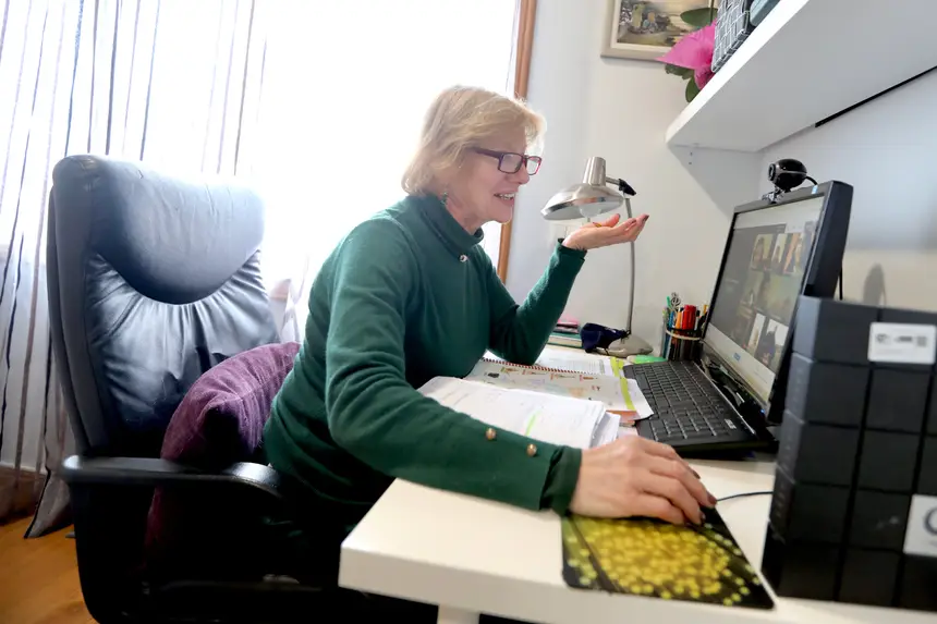 “Professora, você fica diferente sem máscara.” Primeiro, Eunice estranha a receção, mas depois entende. É a primeira vez que aqueles alunos, da turma do 5º E, a veem sem máscara. “Também é a primeira vez que vos estou a ver sem máscara, e têm umas caras muito giras!”, responde, então, sendo logo atropelada pela sinceridade de um aluno: “Com máscara a professora parecia uma senhora de 30 anos.” O riso irrompe na primeira aula de Educação Musical à distância para a turma da Escola Costa Matos, de Vila Nova de Gaia. Antes de rematar o assunto, pedindo aos alunos que abrissem o manual na página 54, Eunice ainda lhes transmitiu uma ideia positiva: “a parte boa disto é podermo-nos ver sem máscara. Ao menos isso, não é?”.