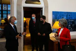 O Presidente da República foi o primeiro a chegar ao Palácio da Cidadela, em Cascais, no qual se realizou esta terça-feira, numa versão inédita e reduzida, a cerimónia de atribuição do Prémio Pessoa.